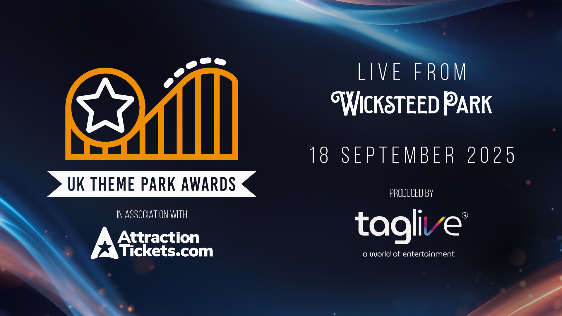 The winners of the UK Theme Park Awards 2025 will be announced on 18th September during the awards ceremony at Wicksteed Park. Watch the live stream, produced by TAG Live®, from 10.30am at ukthemeparkawards.com